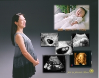 産婦人科で検診などで撮影してもらったエコー写真ですてきな1枚が作れます。 スタジオの写真と組み合わせることもできます。 お持ちのエコー写真をデジタル処理して使用します。元の写真は、返却しますので安心です。